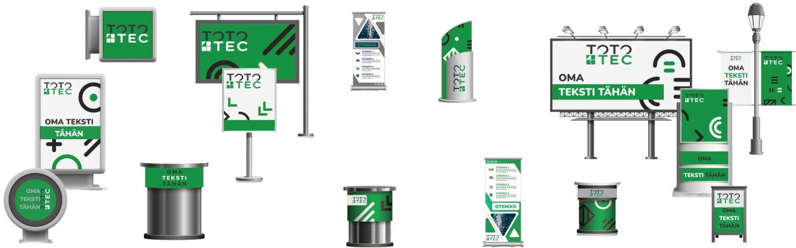 Kestävät kyltit sisälle tai ulos. Sinä päätä. Selkeät opasteet valmiisiin pohjiin tai erikseen toteutettuna.